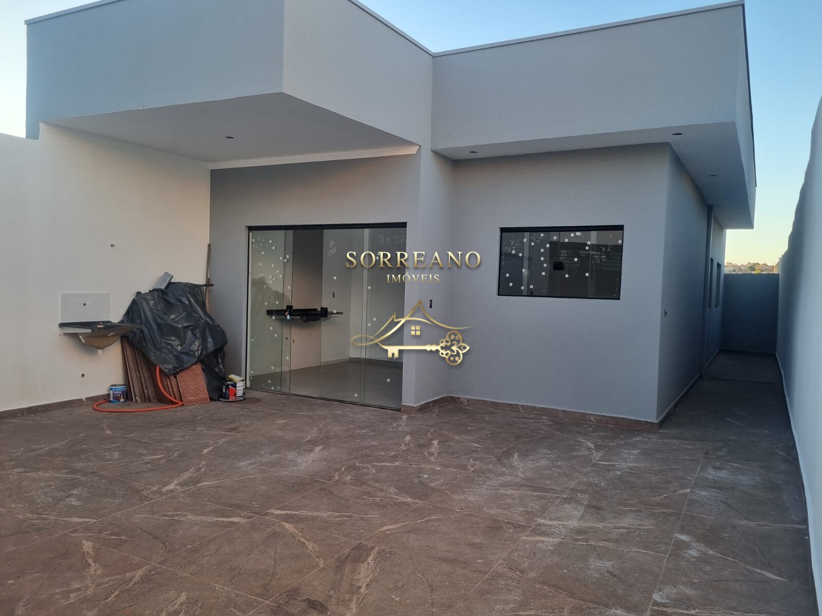 Possui sala e cozinha integradas, jardim de inverno, área gourmet, corredor externo e garagem para até 3 carros. Acabamentos modernos, iluminação em LED, esquadrias de alumínio e portão automático. Imóvel recém-construído, apto para financiamento e utilização de FGTS.