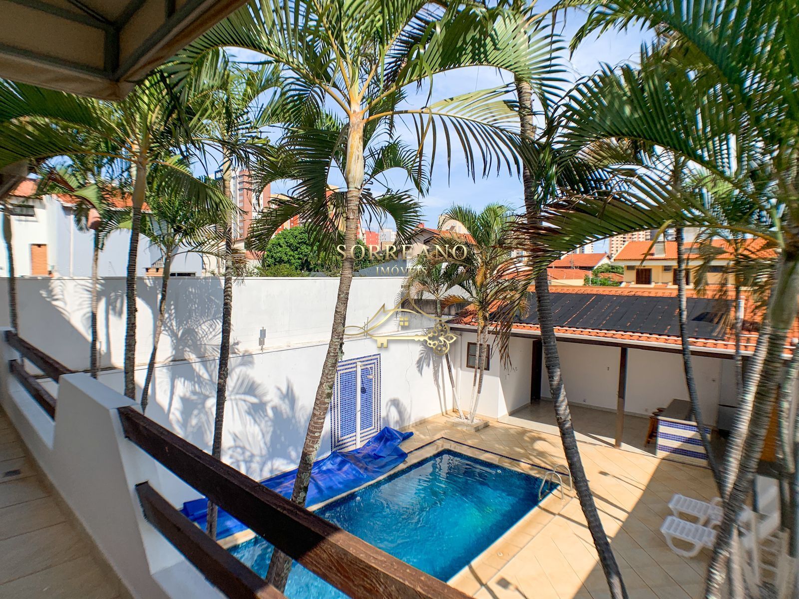 No piso superior dispõe de sala de TV, banheiro social, 3 dormitórios com varanda voltada para a piscina e área de lazer, além de uma suíte ampla com sala.