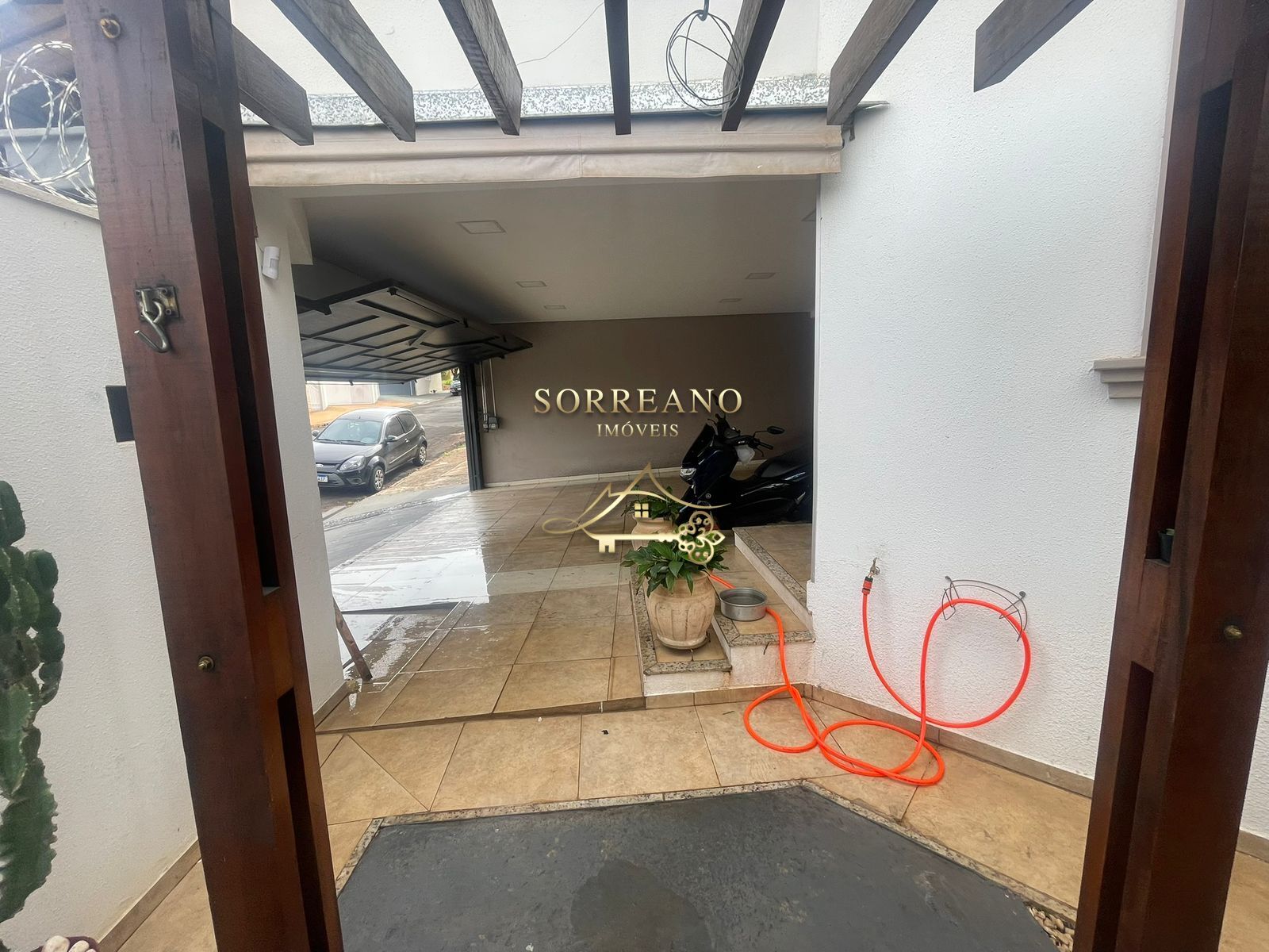 Conta com garagem coberta para 2 veículos e sistema de segurança completo, incluindo portão eletrônico, câmeras e alarme 24 horas.